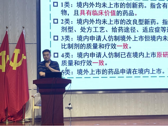 孙勇首先从药物研发过程、研发费用、研发时间等方面介绍了新药研发的难度。随后在化学药品注册分类方面向同学们介绍了不同类别的化学药品,阐述改良型新药的重要意义,以及二类改良型药品的优势。其次孙勇说明了做改良型新药的立项依据,分别是科学性、合理性、必要性和具有可接受的风险和收益比。最后针对改良新型药物的立项思路,介绍了新型药物的研发思路和研发要点。